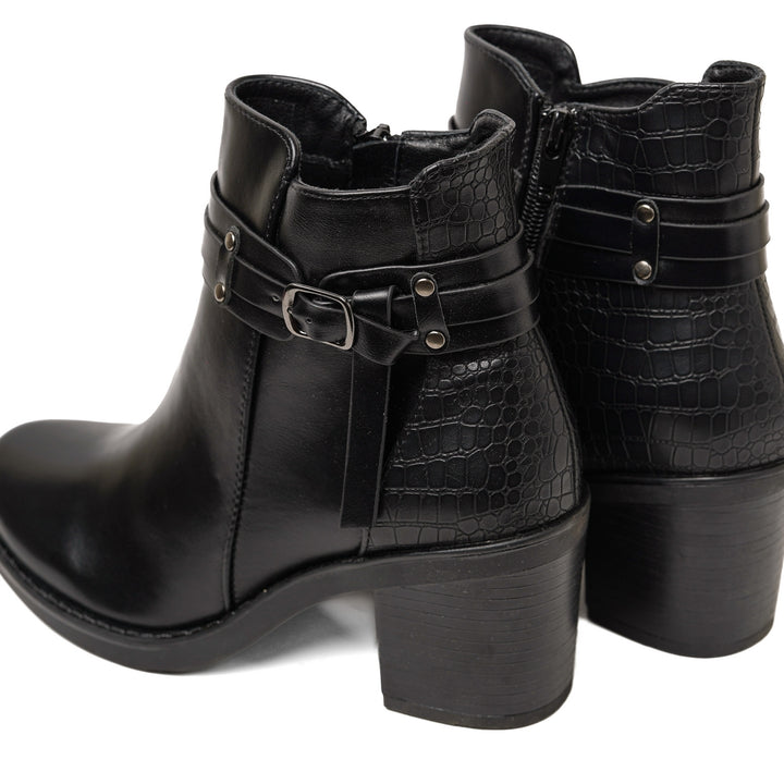 Step up your winter fashion with the A283 Black Wedge Ankle Boots, designed for women who love a perfect blend of elegance and comfort. Crafted with a suede-like finish, these boots exude sophistication while maintaining a cozy and practical feel. The stylish double buckle straps add a trendy touch, making them a standout piece for any outfit.