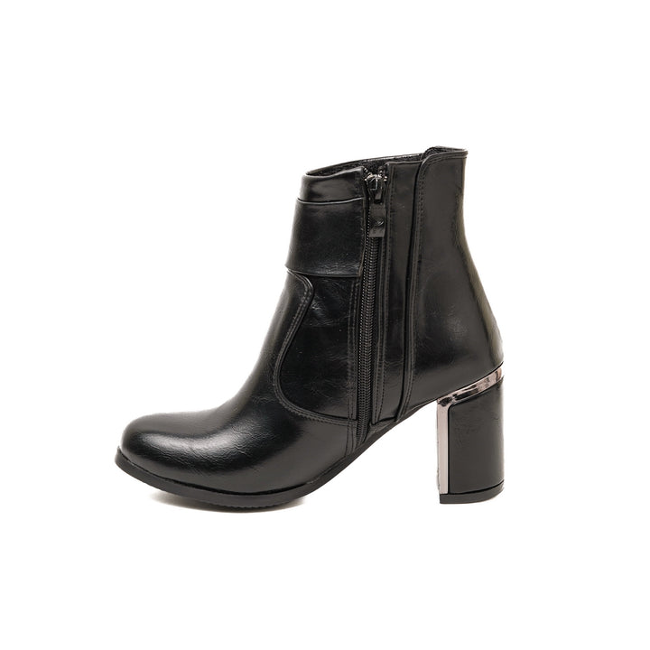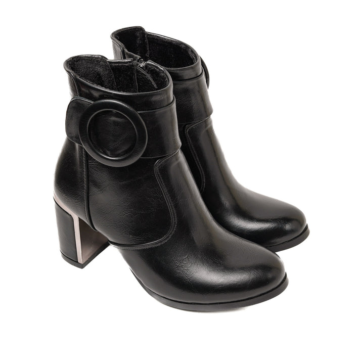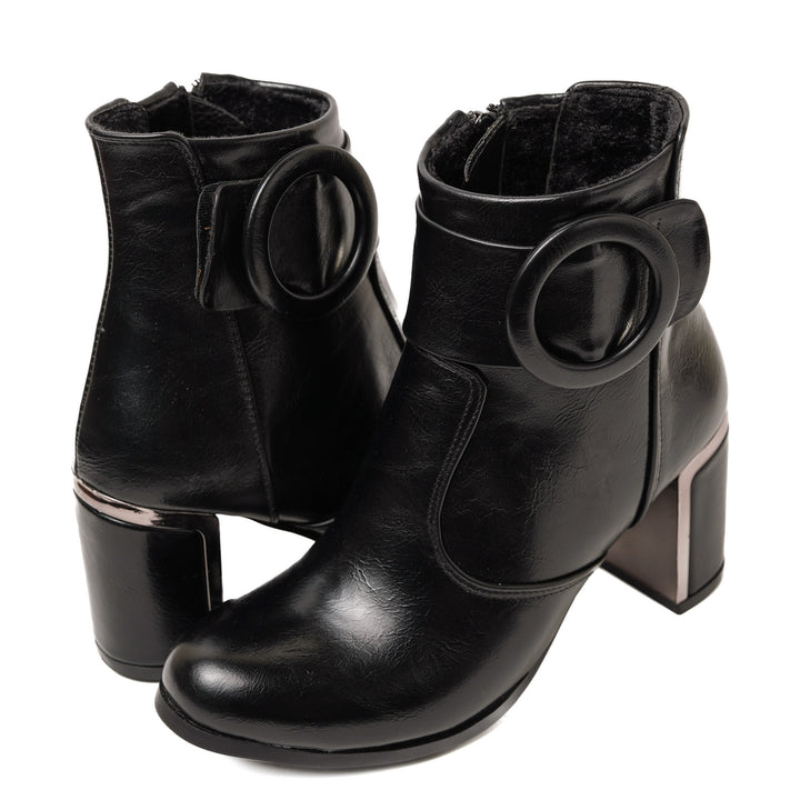 The side zipper closure ensures easy slip-on wear, while the decorative buckle detail enhances the overall look with a trendy edge. Designed with a sturdy sole and cushioned interior, these boots offer all-day comfort, making them a versatile choice for both casual and semi-formal occasions.