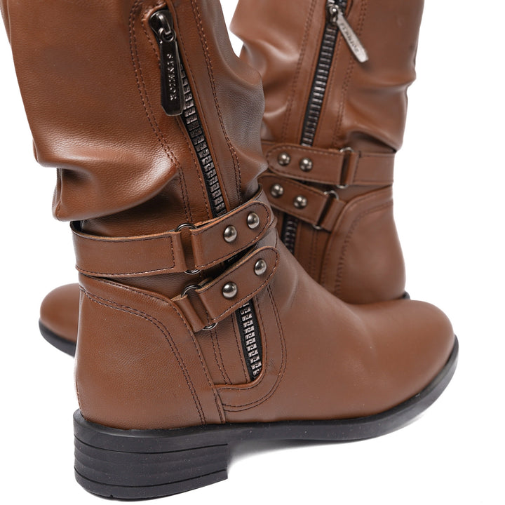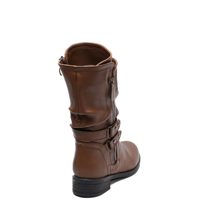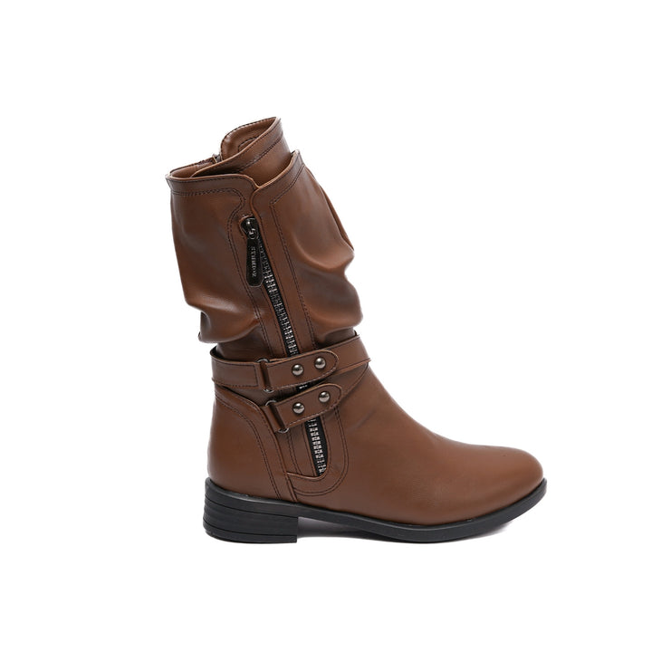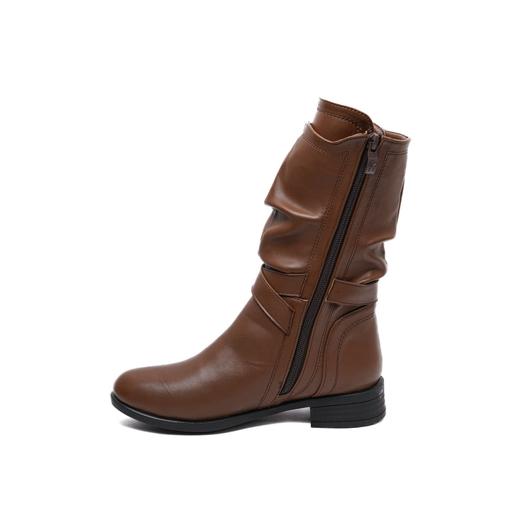 Brown Mid-Calf Boots – Warm Lined Leather Look with Zipper