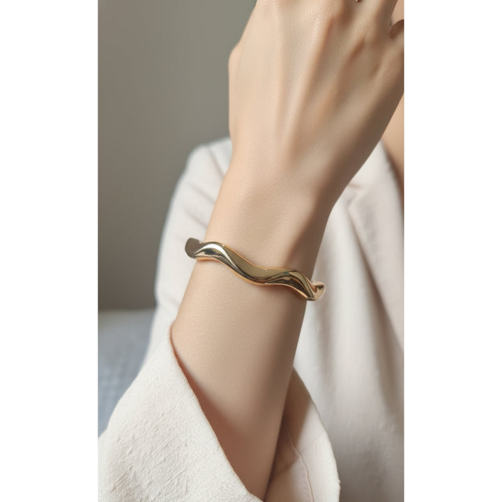 Elevate your look with this gold wavy stainless steel bracelet — a minimalist cuff that blends modern design with lasting durability. Finished in a warm gold tone, this bracelet is both stylish and versatile, ideal for everyday wear or special occasions.