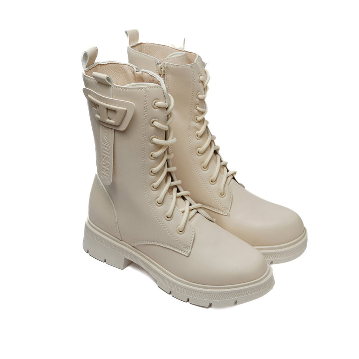 Step into warmth and elegance with these beige lace-up winter boots from Youriz.
