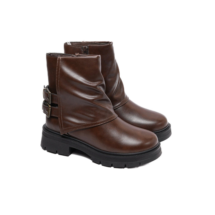 Leather Winter Boots with Buckle Warm & Chic