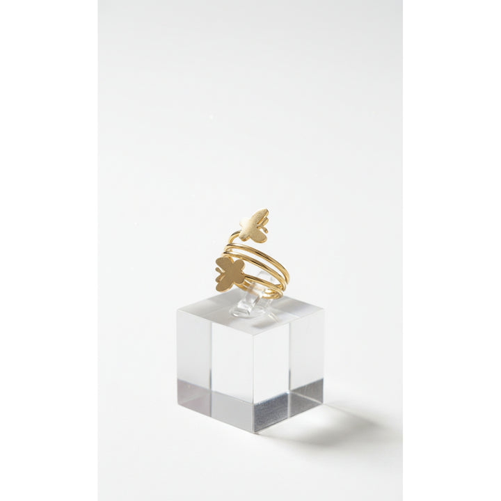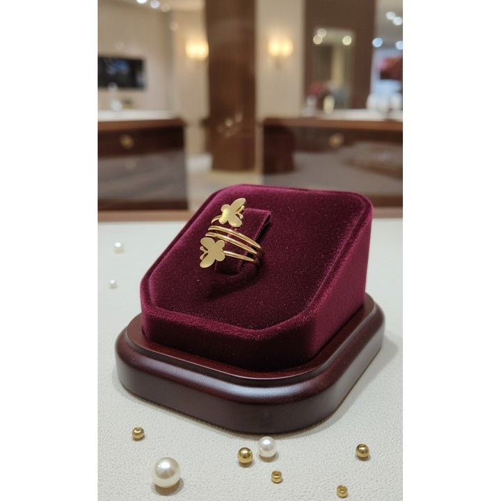 Butterfly Triple-Band Stainless Steel Ring – Gold