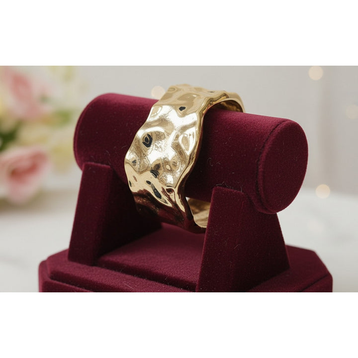 This Sculpted Wave Bracelet features a bold, fluid design crafted from high-quality stainless steel with a rich gold finish. Modern, artistic, and made to stand out — it adds an effortless upscale touch to any outfit.