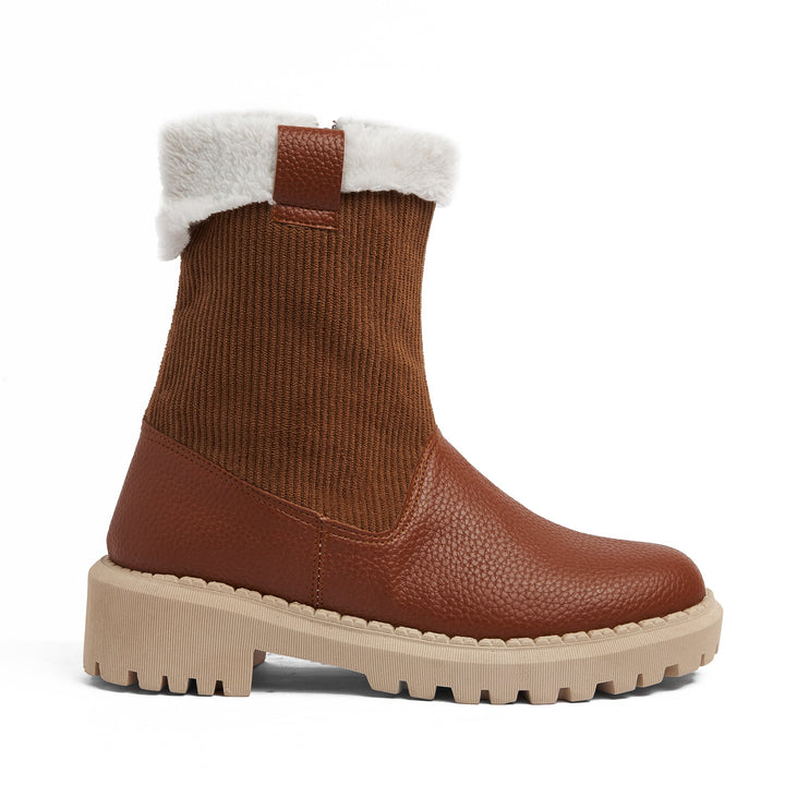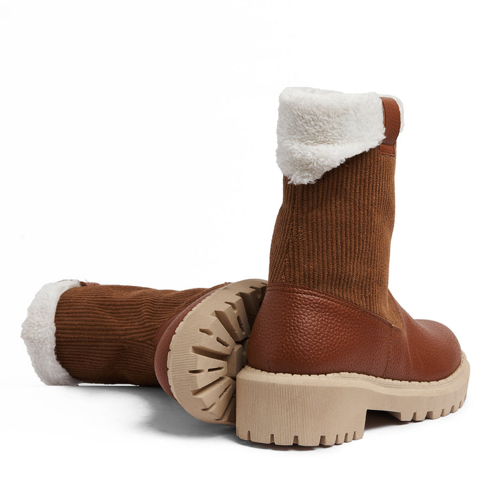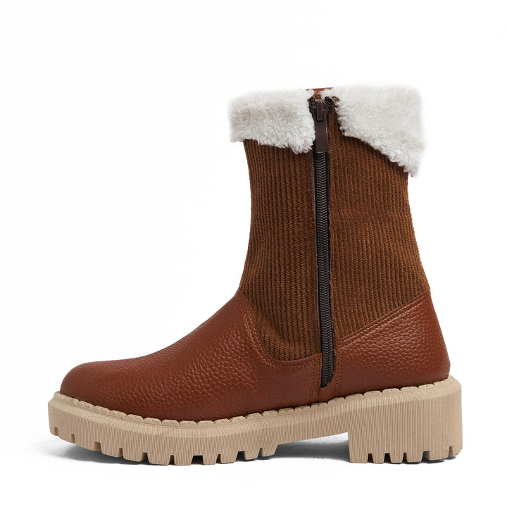 Embrace the winter season with our Faux Fur-Lined Winter Boots, meticulously designed to offer both warmth and style. These boots feature a soft faux fur lining that ensures your feet remain cozy during chilly days. The exterior combines textured leather and knitted fabric, creating a trendy and durable look. The thick, non-slip outsole provides excellent stability, making them ideal for various terrains. With an easy slip-on design, these boots are perfect for daily wear, seamlessly blending fashion with functionality.