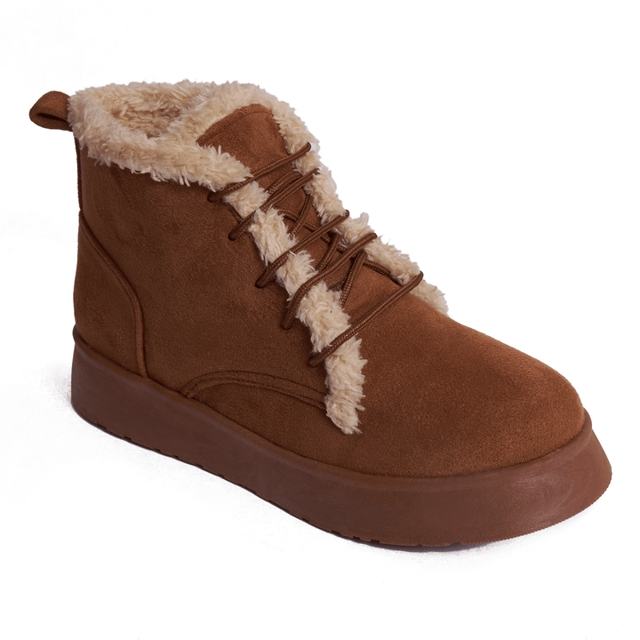 Step into warmth and style with these fur-lined lace-up winter boots in classic colors. Designed for comfort and durability, they feature a soft suede-like finish and a plush inner lining to keep your feet cozy on chilly days.