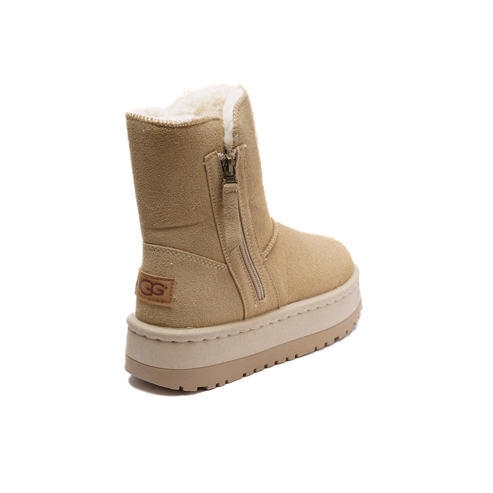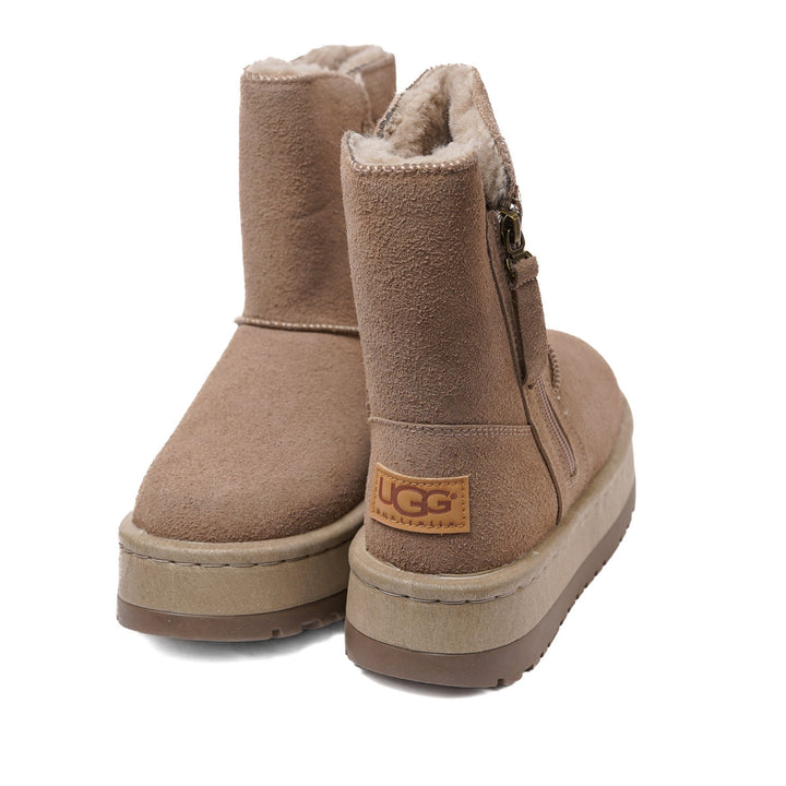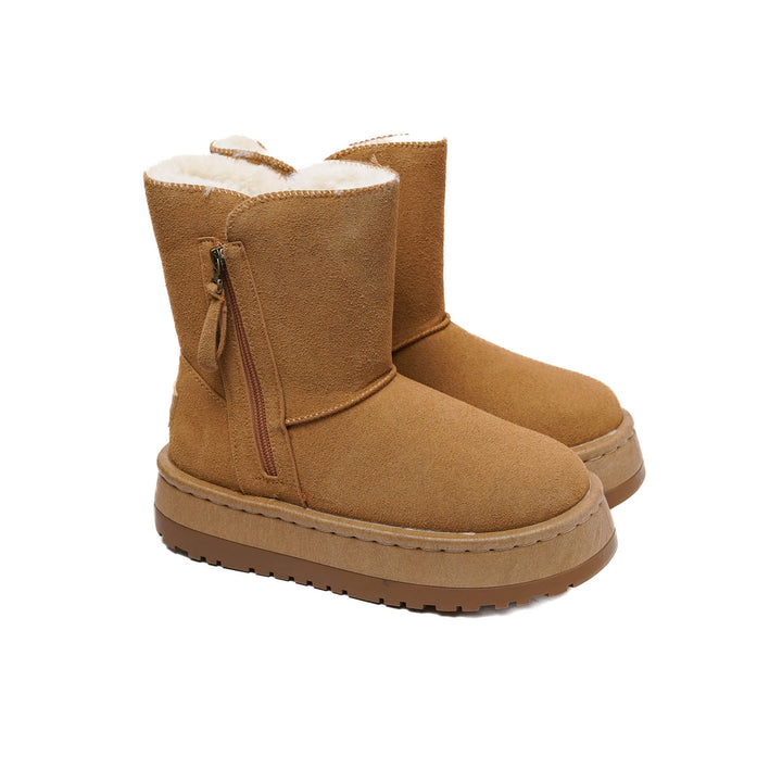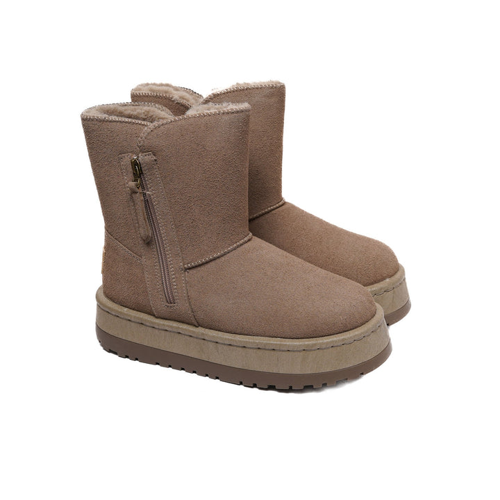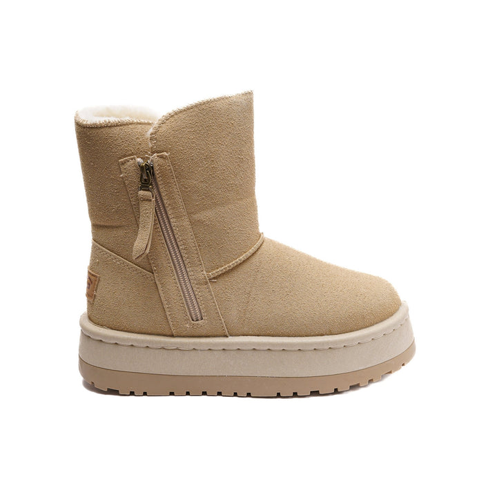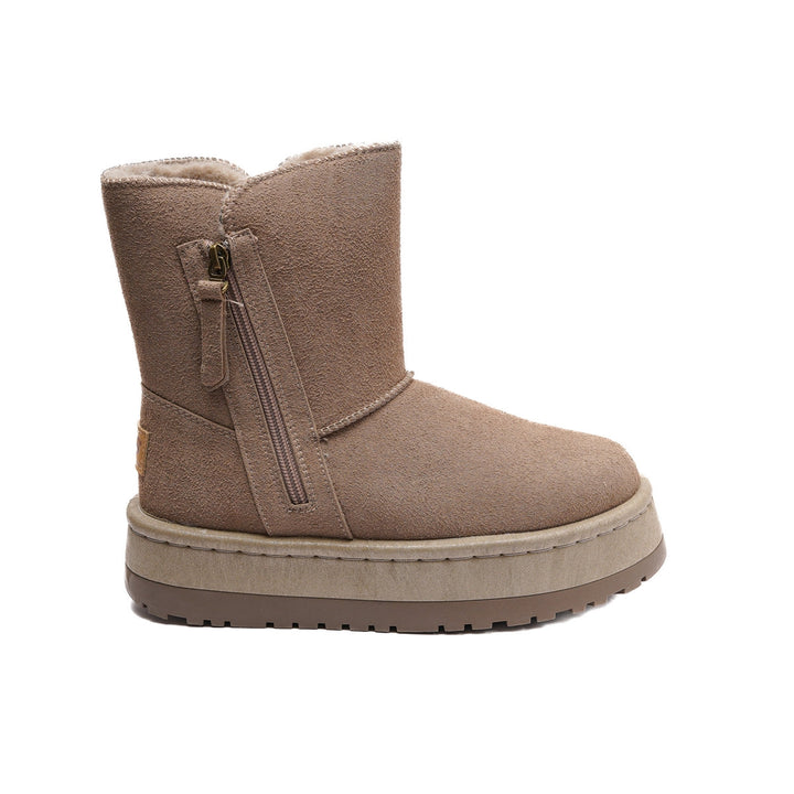 Crafted from high-quality suede, these boots feature a soft fleece inner lining that keeps your feet warm and snug even on the coldest days. The easy side zipper adds a modern touch, making them simple to slip on and off while giving a sleek, fitted shape.